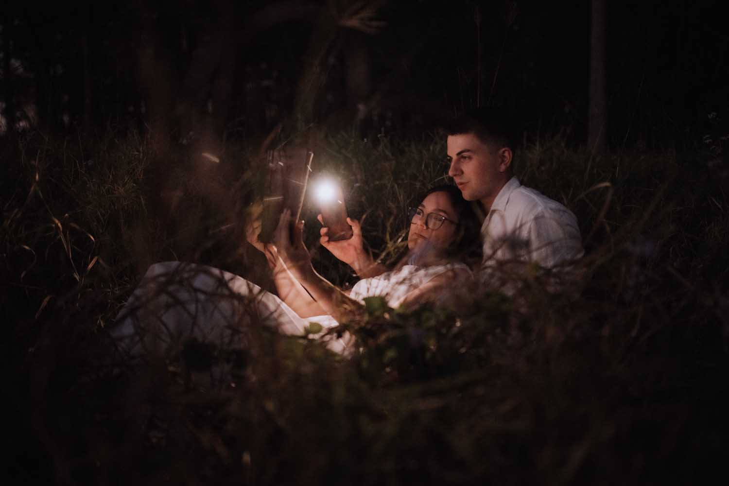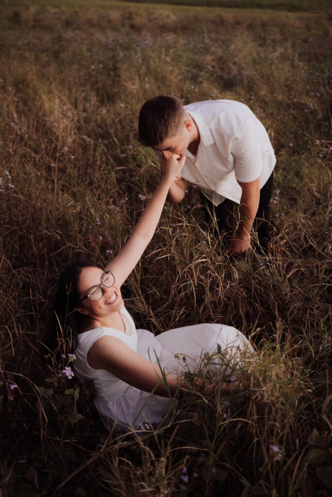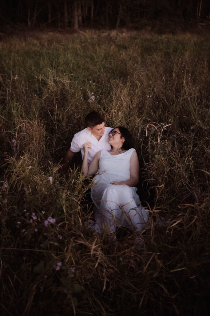 From the moment we met up in the open fields, the light was soft and golden, setting the perfect mood for an evening filled with connection, laughter, and just a little adventure. We wandered through tall grass and explored the edges of the woods—chasing light and those fleeting in-between moments that make a shoot feel truly alive.