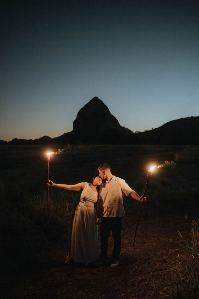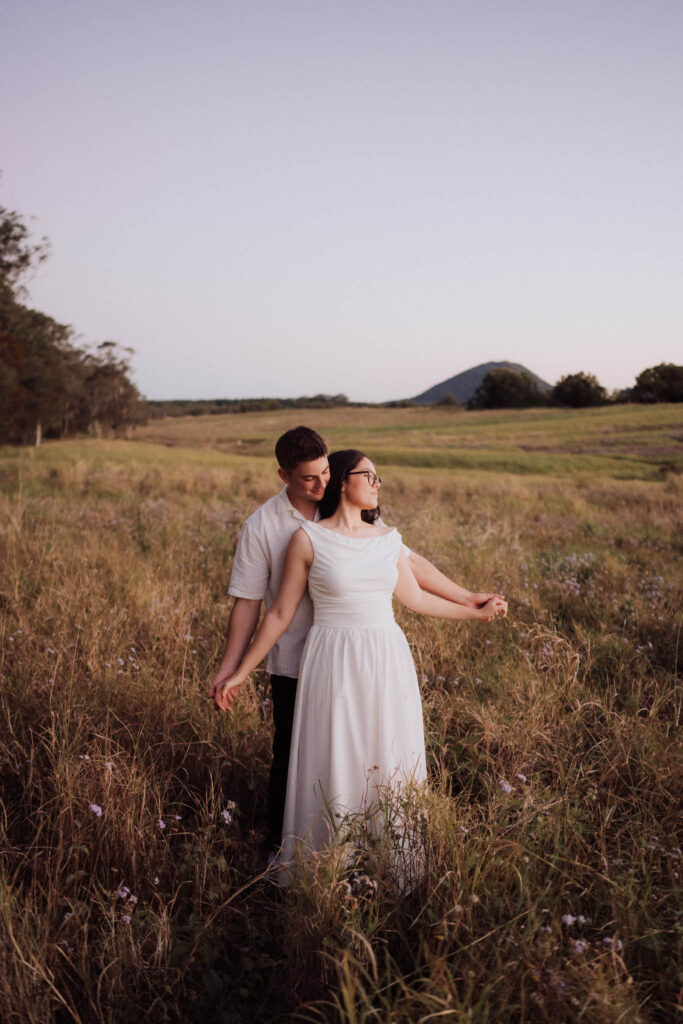 There’s something undeniably magical about sunset sessions—and this one with Angelica and Caleb at Glass House Mountains was no exception.
