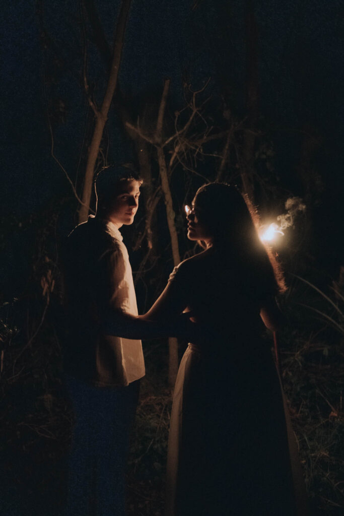 One of the things I’ve always dreamed of incorporating into a couple’s session was tiki torches—and I finally got the chance. As the sun dipped behind the mountains and dusk settled in, we lit the flames, adding a warm, intimate glow to the air. It was the perfect touch of magic, creating such a cozy and cinematic vibe that felt so right for Angelica and Caleb.